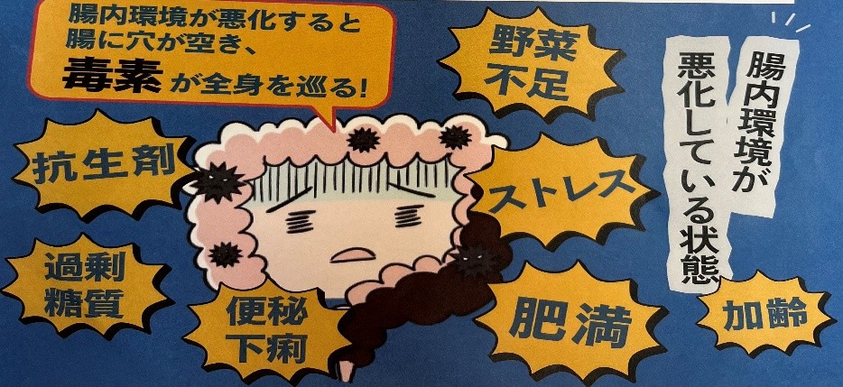腸内環境が悪化すると腸に穴が空き、「毒素」が全身を巡る可能性があります。